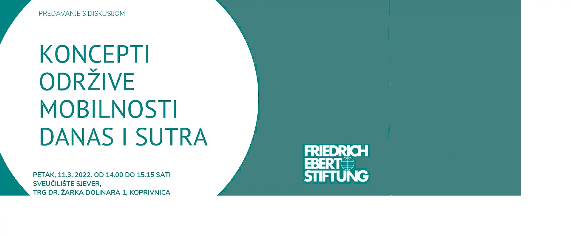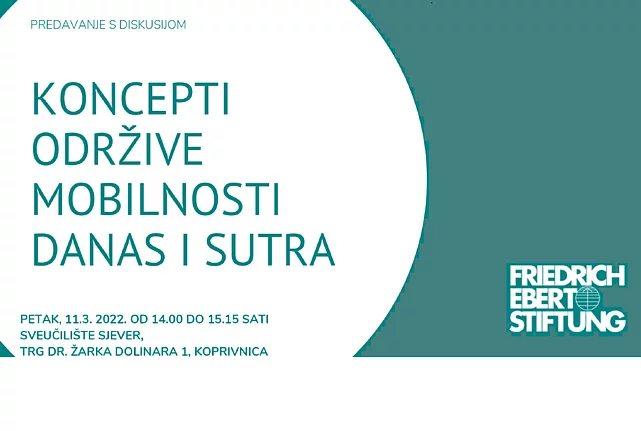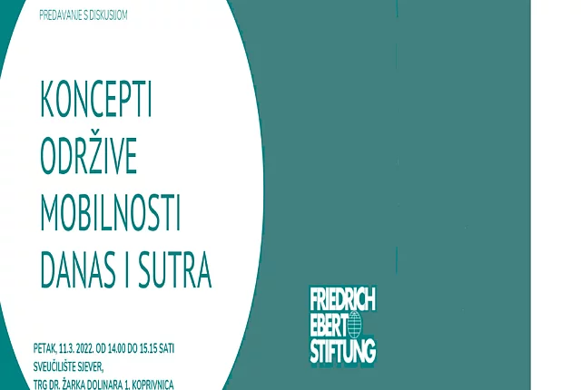 Koncepti održive mobilnosti danas i sutra Naš koncept mobilnosti se mijenja, a grad Koprivnica je zasigurno u Hrvatskoj jedan od predvodnika inovacija na ovom području. Kako se mijenjaju obrasci mobilnosti uslijed rada od kuće? Kako će se u budućnosti promijeniti izgled naših gradova? Kako se mogu ojačati veze između gradova i ruralnih područja? Dr. Sonja Schirmbeck, direktorica Zaklade Friedrich Ebert u Hrvatskoj dat će uvid u temu iz njemačke perspektive te navesti primjere iz drugih zemalja Europske unije. Dođite u petak, 11.3.2022. u 14 sati na Sveučilište Sjever, Trg dr. Žarka Dolinara 1 u Koprivnici i podijelite svoje ideje o novim konceptima mobilnosti! Ovdje preuzmite program.