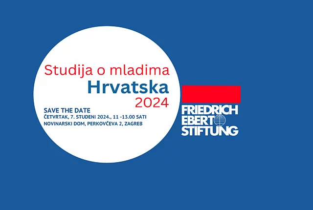 Događanja Prezentacija studije o mladima Hrvatska 2024 16.10.2024 SAVE THE DATE Čega se mladi boje, a čemu se nadaju? Mladi danas žive u svijetu obilježenom krizama i brzim promjenama. Njihovo odrastanje zasjenjeno je pandemijom, ratnim sukobima, klimatskom krizom kao i sve naglašenijim nejednakostima u društvu. Nova studija o mladima zaklade Friedrich Ebert i Instituta za društvena istraživanja (IDIZ) daje nam uvide o tome kako mladi danas u Hrvatskoj razmišljaju o društvu, te kako vide svoju osobnu budućnost. Prezentacijom ove studije želimo otvoriti raspravu o pogledima mladih na politiku i demokraciju. Ovo istraživanje uključilo je niz pitanja o obrazovanju, zapošljavanju i mobilnosti, kao i obitelji i prijatelji. Osim rezultata iz Hrvatske u okviru ove prezentacije bit će predstavljena i regionalna perspektiva, s obzirom na to da je u isto vrijeme studija provedena u 12 zemalja u regiji. Studiju ćemo prezentirati u četvrtak, 7. studenog 2024. od 11-13 sati u Novinarskom domu, Perkovčeva 2.