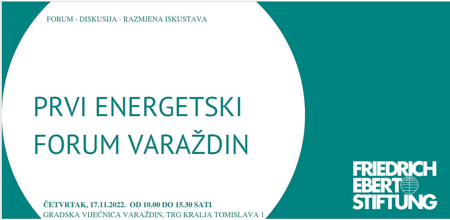 Prvi energetski forum Varaždin Zaklada Friedrich Ebert i Grad Varaždin organiziraju prvi energetski forum Varaždin. Cilj ovog događanja je utvrditi mogućnosti energetske tranzicije temeljene na obnovljivim izvorima energije u gradu Varaždinu. U okviru ovog foruma želimo potaknuti i razmjenu iskustva s drugim jedinicama lokalne samouprave, konkretno s osnivačima energetske zadruga otoka Krka te energetske zadruge iz Križevaca. Broj sudionika je ograničen, a sudjelovanje je samo moguće uz prethodnu najavu na email: blanka.smoljan(at)fes.hr Program
