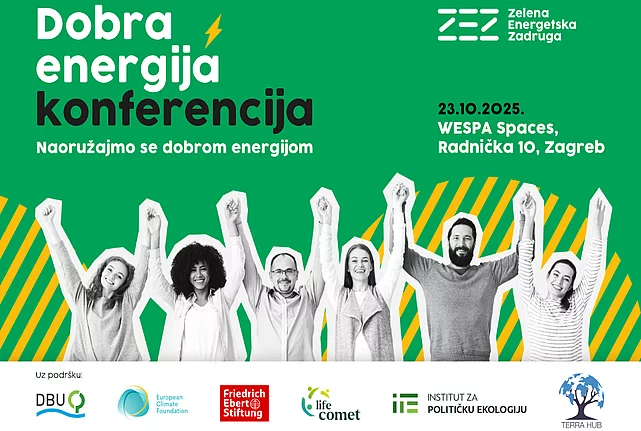 Događanja Novosti Vrijeme je za treće izdanje konferencije „Dobra energija“ 21.09.2025 Fokus konferencije, pod nazivom Naoružajmo se dobrom energijom, je regionalan i okuplja ključne aktere građanske energije iz Hrvatske, regije jugoistočne Europe te susjednih zemalja Zapadnog Balkana. U fokusu je suradnja, dijeljenje, stvaranje prostora za razmjenu znanja, iskustava i konkretnih rješenja koja ubrzavaju pravednu energetsku tranziciju u korist građana. Kada? 23. listopada 2025.Gdje? WESPA Spaces, Radnička cesta 10, Zagreb Iako europske direktive pružaju okvir za razvoj energetskih zajednica, u praksi se njihova provedba odvija sporo – kako u Hrvatskoj, tako i u većini zemalja regije. Cilj konferencije je to promijeniti i to kroz: 1. Razmjenu iskustava s terena Dobre prakse, ali i „lekcije iz pogrešaka“, predstavit će inicijative energetskih zajednica iz regije. Želimo jasno prikazati što funkcionira, a što ne te što je potrebno za širu replikaciju uspješnih modela i masovniji pokret građanske energije. 2. Dijalog sa zakonodavcima i institucijama Konferencija će okupiti stručnjake iz nadležnih ministarstava, nacionalnih institucija, gradova, regulatornih tijela, operatora sustava, javnih fondova i drugih relevantnih aktera kako bismo otvoreno razgovarali o preprekama za razvoj energetskih zajednica:Zašto se još uvijek ne provodi dijeljenje energije?Kako prevladati administrativne barijere?Koji su financijski mehanizmi nužni za podršku građanskoj energiji?3. Dogovor o konkretnim koracima U trećem dijelu konferencije cilj je povezati zakonodavce, operatore i građanske inicijative kako bi definirali zajedničku viziju za građansku energiju s barem tri ključna prioriteta za uklanjanje prepreka i ubrzanje provedbe EU direktiva za energetske zajednice u praksi. Očekujemo stotinjak sudionika, predstavnika inicijativa, stručnjaka iz institucija i energetskih operatera iz 12 zemalja: Srbije, BiH, Crne Gore, Sjeverne Makedonije, Albanije, Kosova, Rumunjske, Bugarske, Mađarske, Grčke, Slovenije i Hrvatske. Okvirni program konferencije pronađite ovdje, a detaljan program slijedi uskoro! Prijavite se putem obrasca za prijavu poveznica. Organizator – Zelena energetska zadruga Uz podršku partnera i donatora: Institut za političku ekologiju (IPE), Terra Hub, Zaklada Friedrich Ebert Zagreb (FES), Njemačka savezna zaklada za zaštitu okoliša (DBU), Europska klimatska fondacija (ECF), EU projekt Life COMET i drugi.