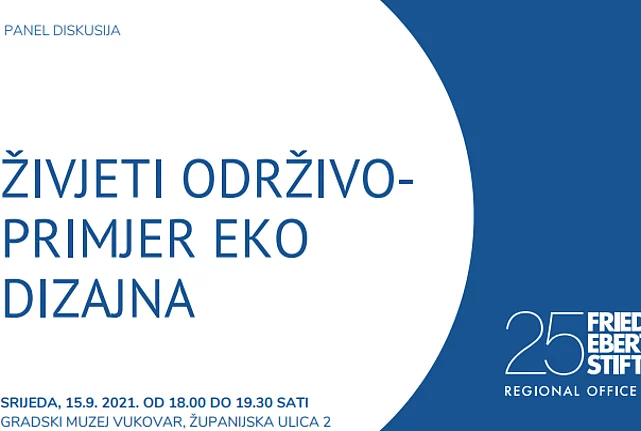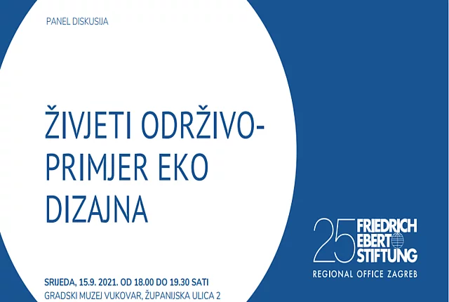 Živjeti održivo - primjer eko dizajn Zaklada Friedrich Ebert Zagreb u suradnji s Europskim domom Vukovar organizira dvodnevno događanje na temu Održivog načina življenja i eko dizajna. Program događanja možete preuzeti ovdje. Prijave primamo do 12.9.2021. putem emaila: tribinaedvu(at)edvu.hr